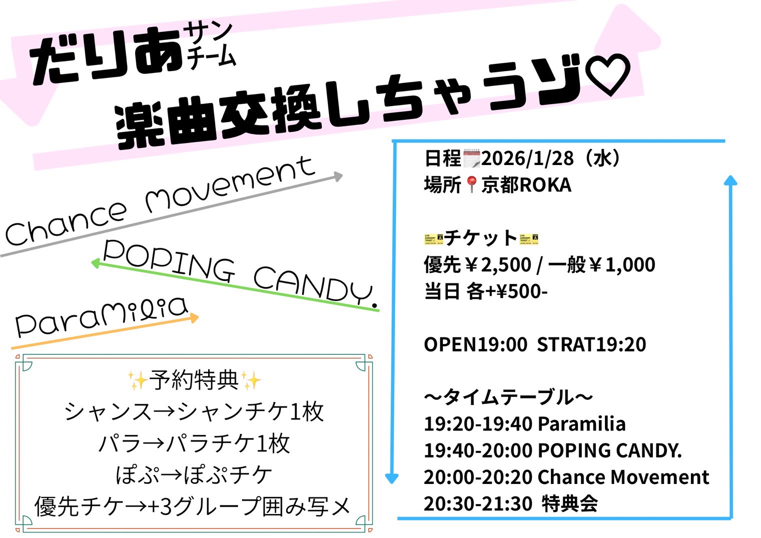 優先 ¥2500 + 1D / 一般 ¥1,000 + 1D / 当日 +¥500